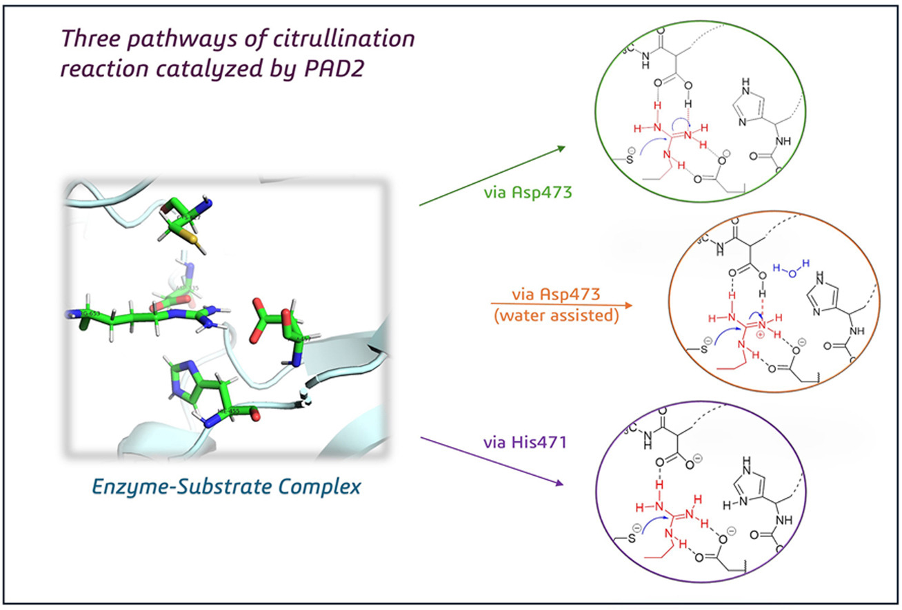 Computational insights into substrate-assisted citrullination mechanisms of PAD2 isozyme: A comparative analysis of reaction pathways