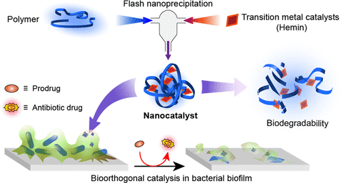 Biodegradable Antibacterial Bioorthogonal Polymeric Nanocatalysts Prepared by Flash Nanoprecipitation